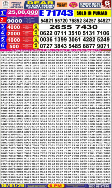 Punjab State Dear 50 6 PM Lottery Result 16.01.26