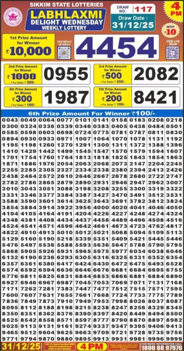 Labh Laxmi Lottery Result Today 4PM 31.12.25