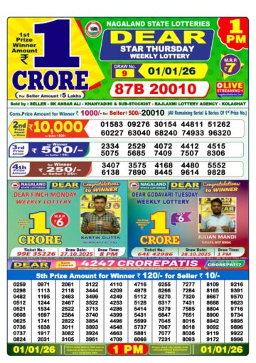 Dear Lottery Result 01.01.26 1PM Today Dear Morning