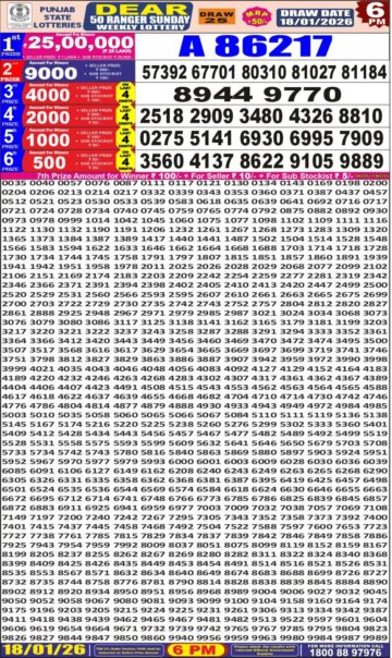 Punjab State Dear 50 6 PM Lottery Result 18.01.26