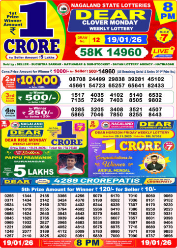 Dear Lottery Result 19.01.26 6PM Today Dear Day Result