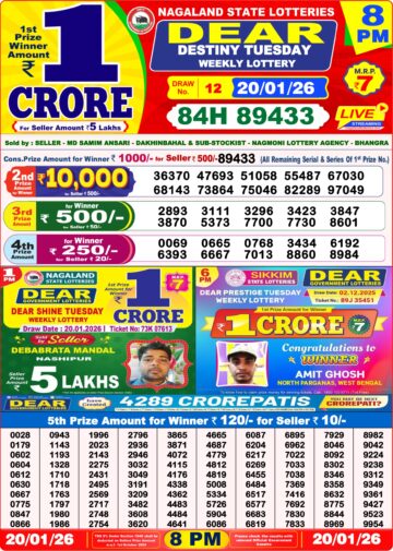 Dear Lottery Result 20.01.26 6PM Today Dear Day Result