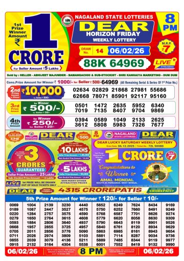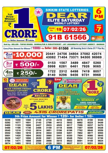 Dear Lottery Result 07.02.26 6PM Today Dear Day Result