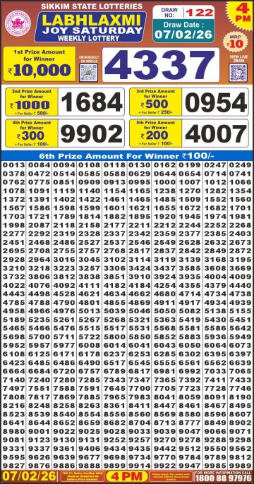 Labh Laxmi Lottery Result Today 4PM 07.02.26