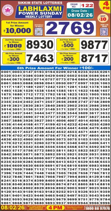 Labh Laxmi Lottery Result Today 4PM 08.02.26