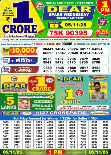 Dear Lottery Result 05.11.25 1PM Today Dear Morning