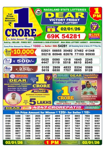 Dear Lottery Result 02.01.26 1PM Today Dear Morning