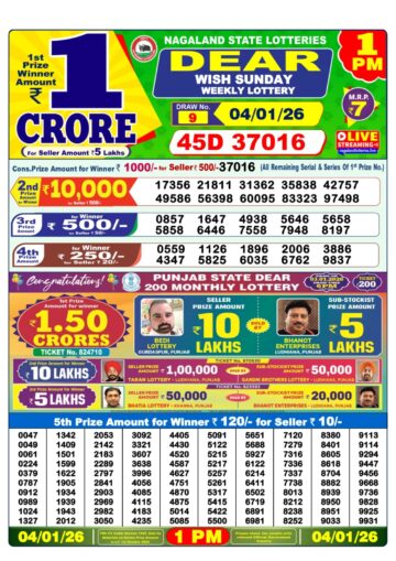 Dear Lottery Result 04.01.26 1PM Today Dear Morning