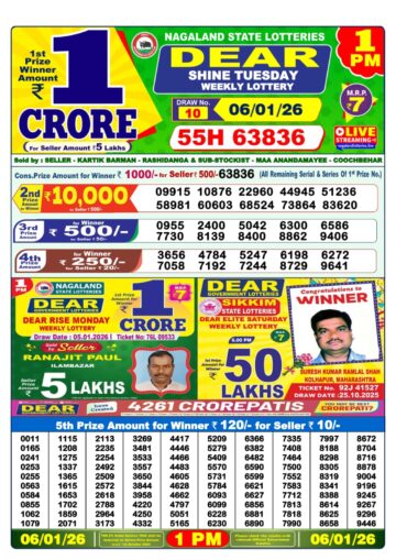 Dear Lottery Result 06.01.26 1PM Today Dear Morning
