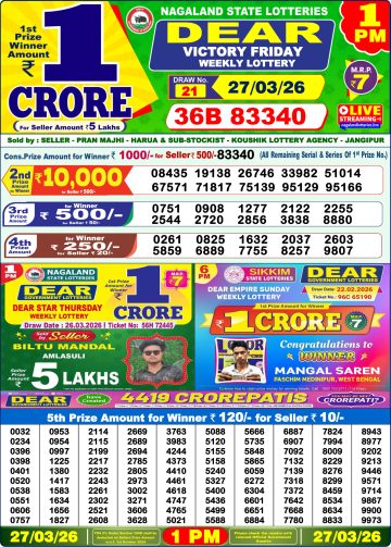 Dear Lottery Result 27.03.26 1PM Today Dear Morning