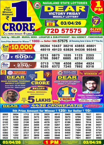 Dear Lottery Result 03.04.26 1PM Today Dear Morning