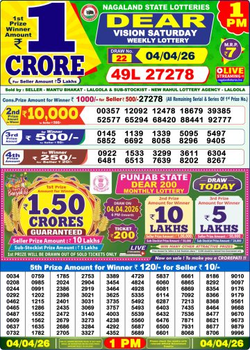 Dear Lottery Result 04.04.26 1PM Today Dear Morning