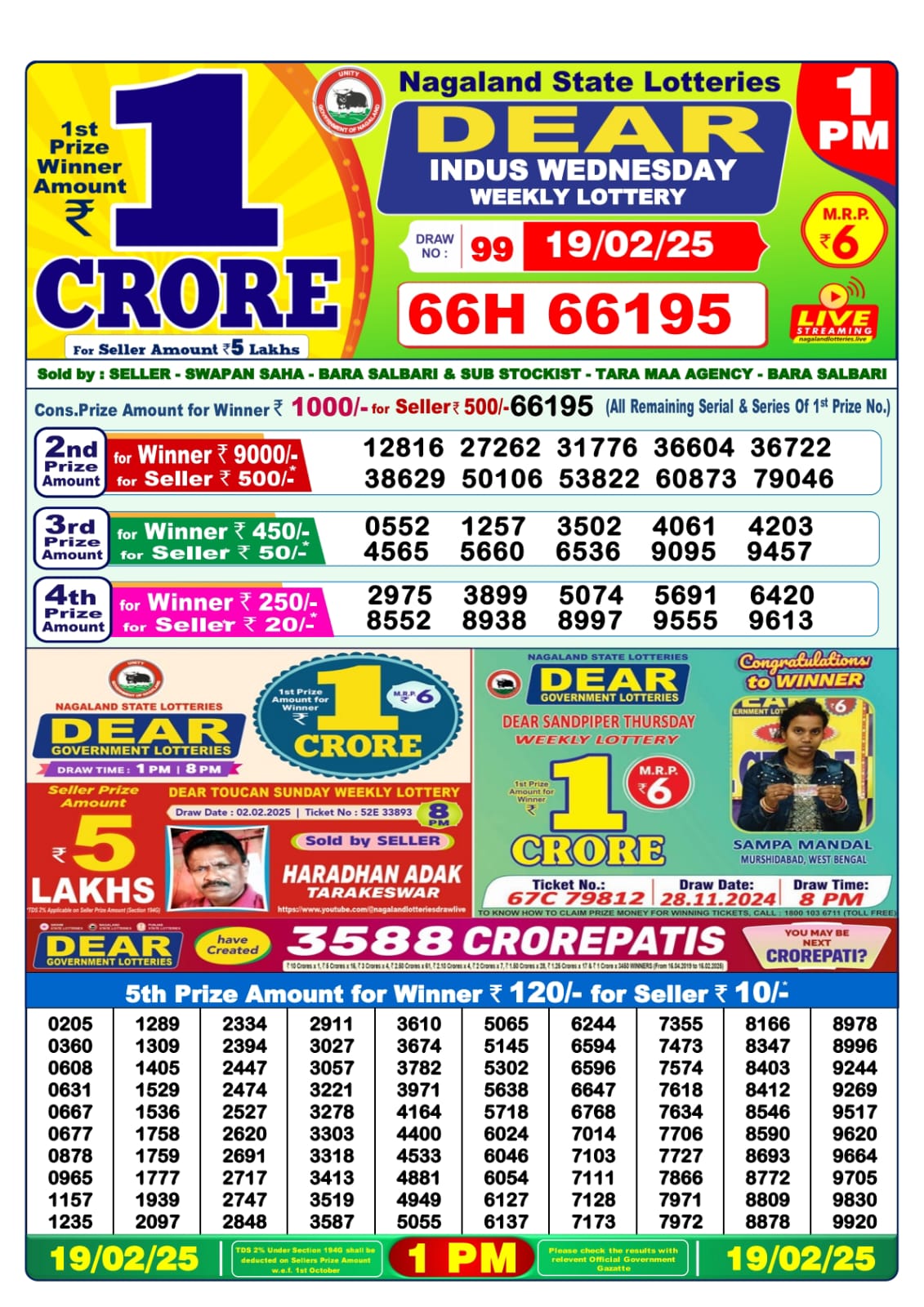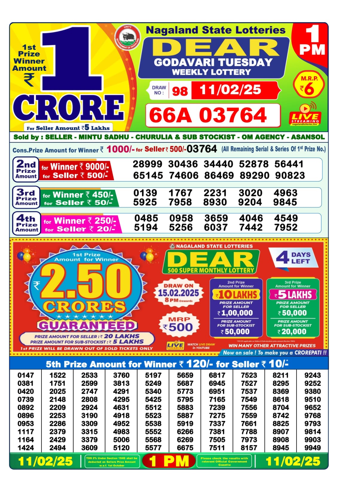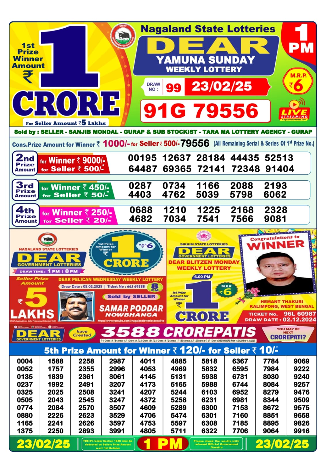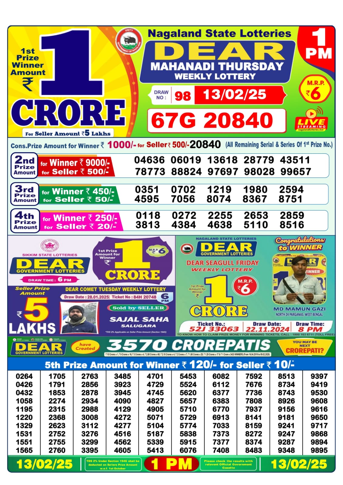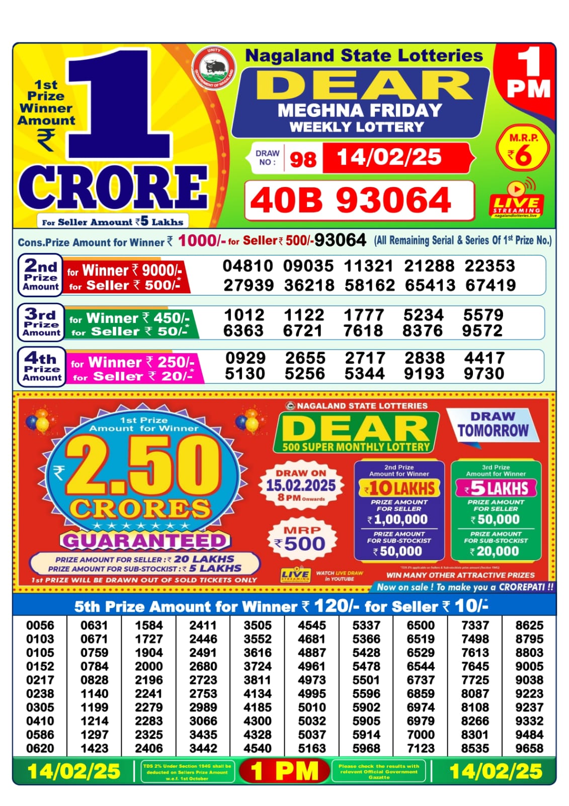 Dear lottery result today 1pm 6.2.25