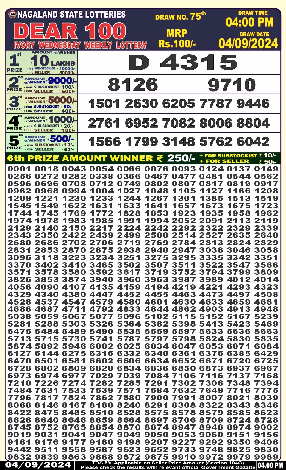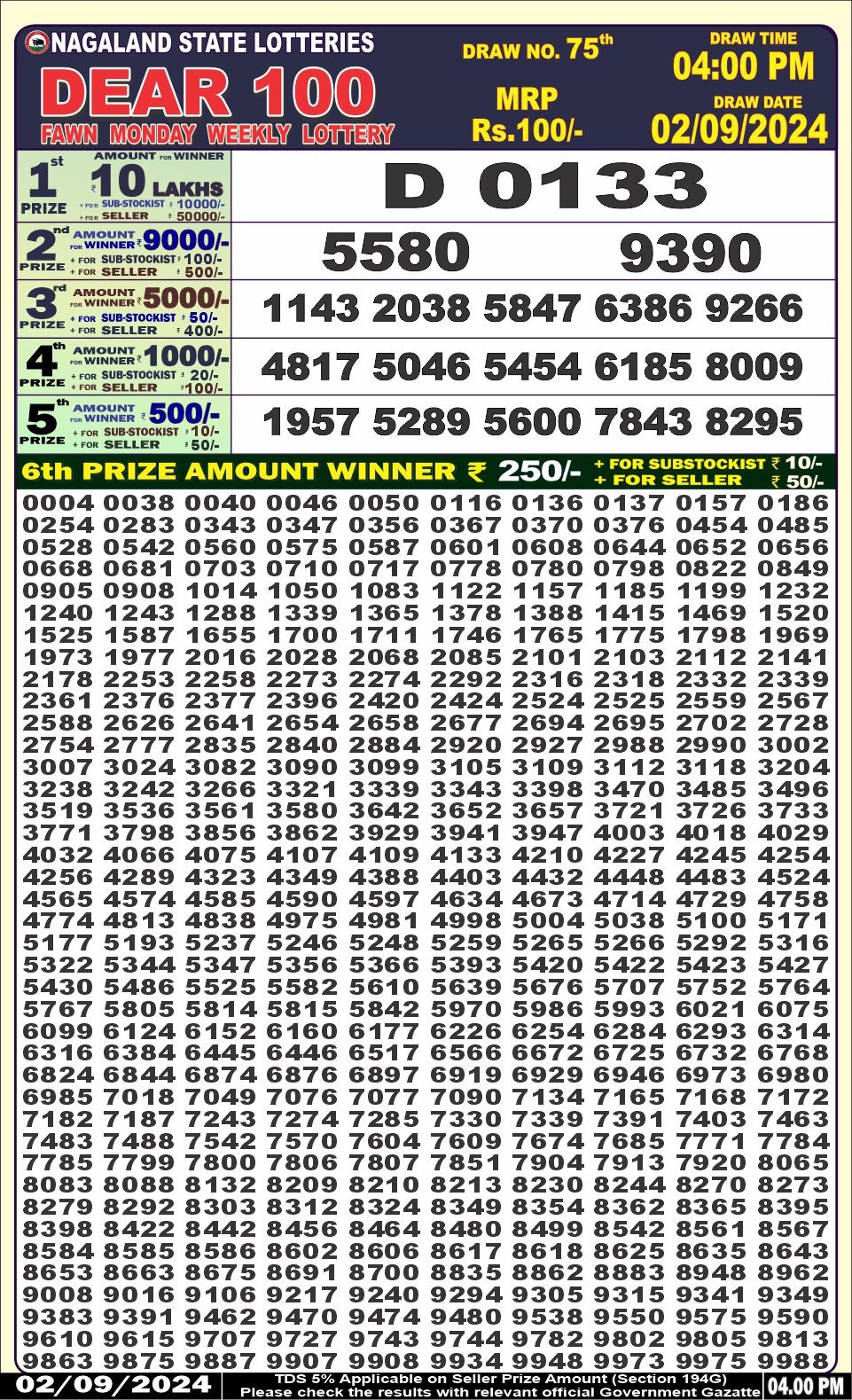 • Dear Lottery Result 30.10.25 6PM Today Dear Day Result