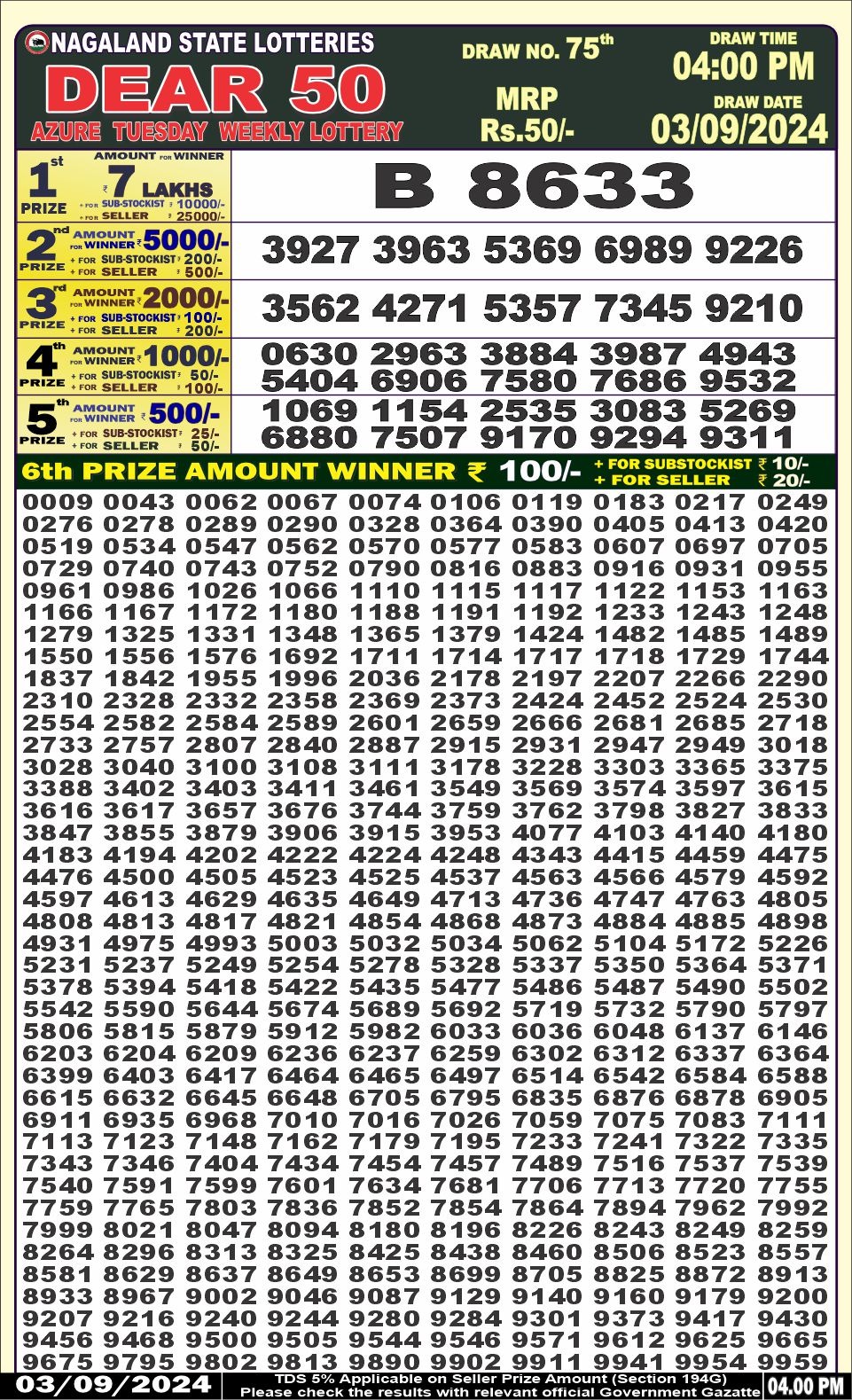 • Punjab State Dear 50 6 PM Lottery Result 30.10.25