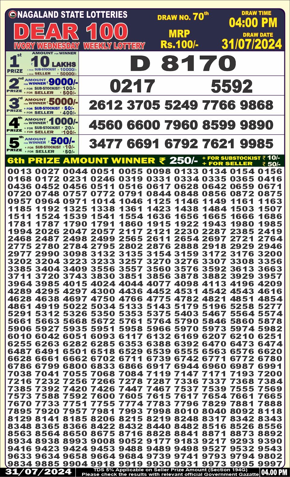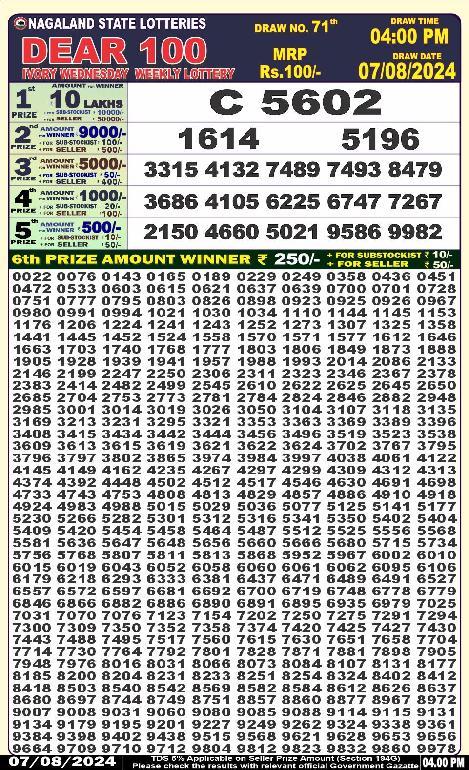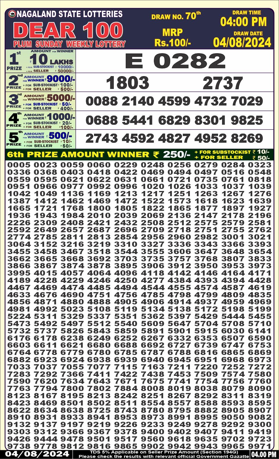 • Dear Lottery Result 29.10.25 6PM Today Dear Day Result
