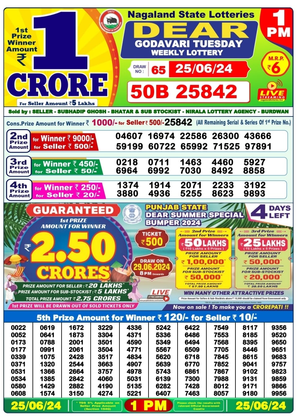 • Dear Lottery Result 29.10.25 1PM Today Dear Morning