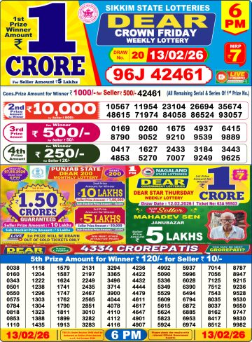 Dear Lottery Result 13.02.26 6PM Today Dear Day Result