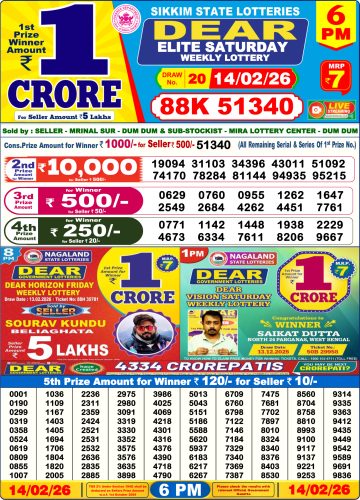 Dear Lottery Result 14.02.26 6PM Today Dear Day Result