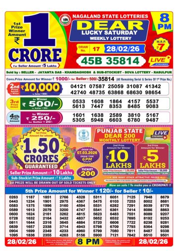 Dear Lottery 8pm Declared 28.02.26 Lottery Sambad Evening
