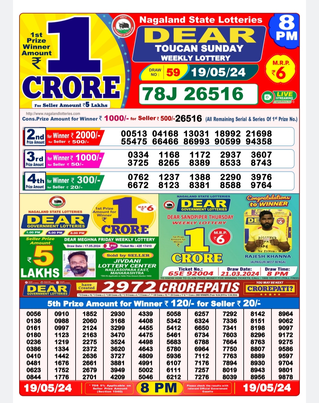 Dear 8pm lottery result 19-5-24