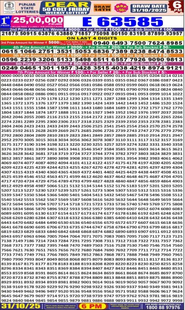 Punjab State Dear 50 6 PM Lottery Result 31.10.25