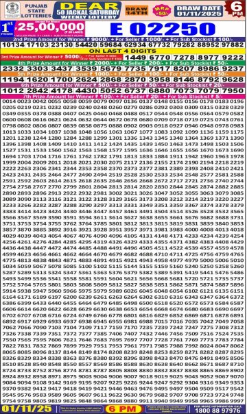 Punjab State Dear 50 6 PM Lottery Result 25.10.25