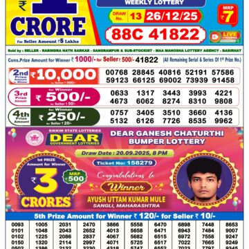 Dear 6pm lottery result 26-7-24 Share: XFacebookPinterestRedditVKDiggLinkedinMix Related Results 0 8 Dear Lottery Result 26.12.25 6PM Today Dear Day Result 0 17 Dear Lottery Result 25.12.25 6PM Today Dear Day Result 0 25 Dear Lottery Result 24.12.25 6PM Today Dear Day Result 0 34 Dear Lottery Result 23.12.25 6PM Today Dear Day Result
