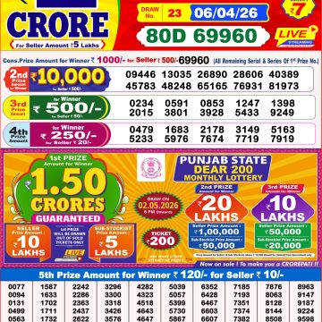 Dear Lottery Result 07.04.26 is Published here. Check Lottery Sambad Result 8 PM 07.04.26 . Dear 8PM Lottery is Conducted by Nagaland state Lotteries and is also called 6 Rupees 1 Crore Lottery. This Lottery is also known at Dear Evening Lottery. You can check Lottery Sambad 8 PM 07.04.26 Results for this draw here including complete winner list.