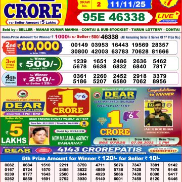 • Dear Lottery Result 12.11.25 6PM Today Dear Day Result