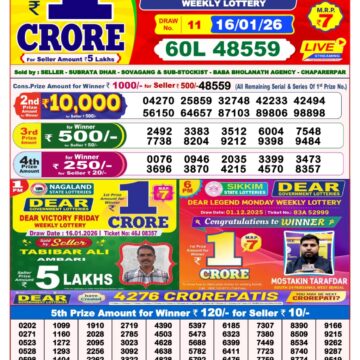 Dear Lottery Result 17.01.26 is Published here. Check Lottery Sambad Result 8 PM 17.01.26 . Dear 8PM Lottery is Conducted by Nagaland state Lotteries and is also called 6 Rupees 1 Crore Lottery. This Lottery is also known at Dear Evening Lottery. You can check Lottery Sambad 8 PM 17.01.26 Results for this draw here including complete winner list.