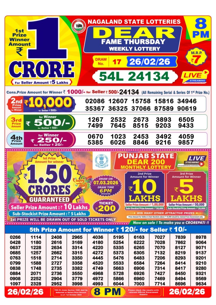 Dear Lottery 8pm Declared 26.02.26 Lottery Sambad Evening Share: XFacebookPinterestRedditVKDiggLinkedinMix Related Results 0 6 Dear Lottery 8pm Declared 12.04.26 Lottery Sambad Evening 0 24 Dear Lottery 8pm Declared 11.04.26 Lottery Sambad Evening 0 26 Dear Lottery 8pm Declared 10.04.26 Lottery Sambad Evening 0 24 Dear Lottery 8pm Declared 09.04.26 Lottery Sambad Evening