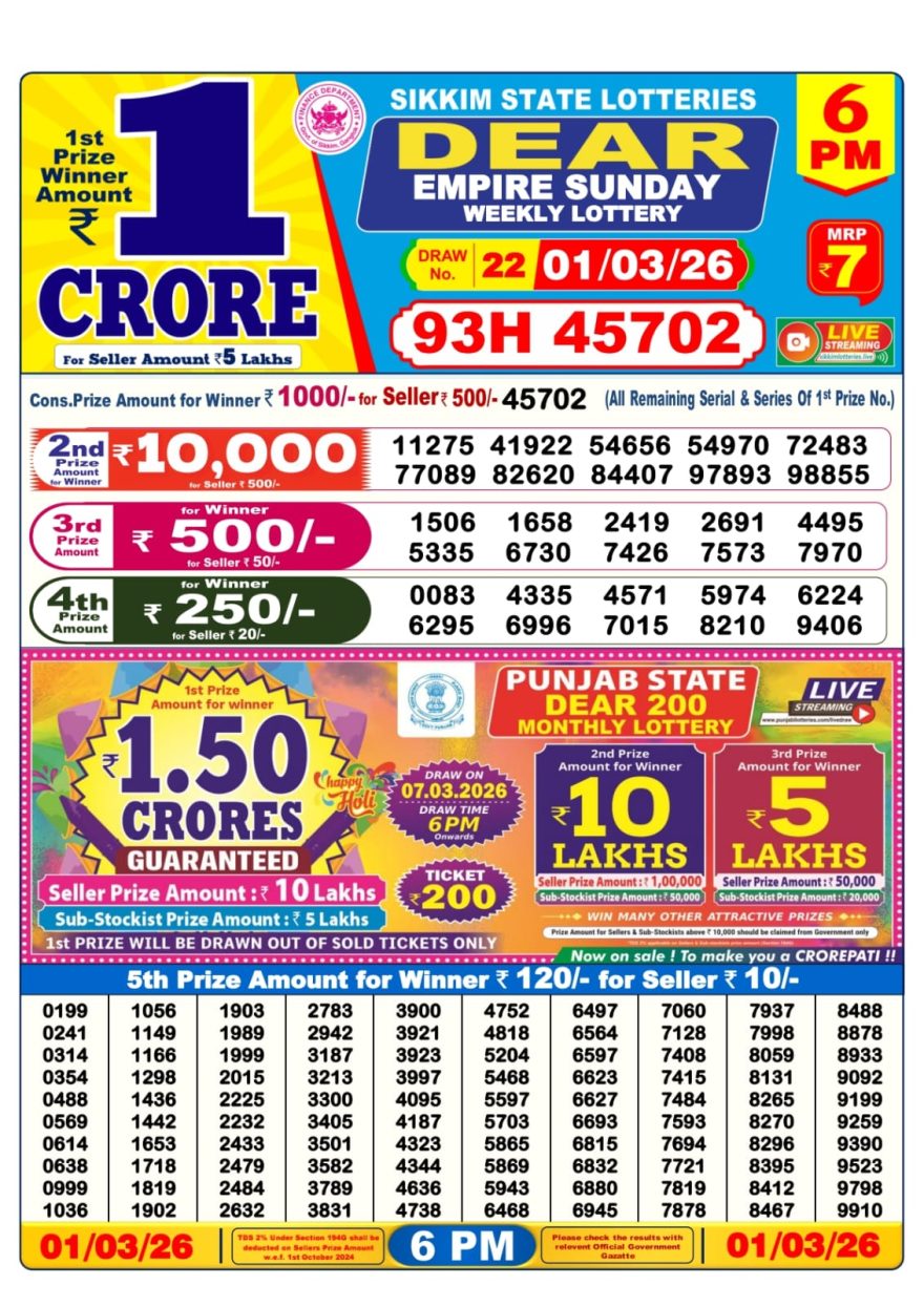 Dear Lottery Result 01.03.26 6PM Today Dear Day Result Share: XFacebookPinterestRedditVKDiggLinkedinMix Related Results 0 6 Dear Lottery Result 24.04.26 6PM Today Dear Day Result 0 12 Dear Lottery Result 23.04.26 6PM Today Dear Day Result 0 13 Dear Lottery Result 22.04.26 6PM Today Dear Day Result 0 15 Dear Lottery Result 21.04.26 6PM Today Dear Day Result