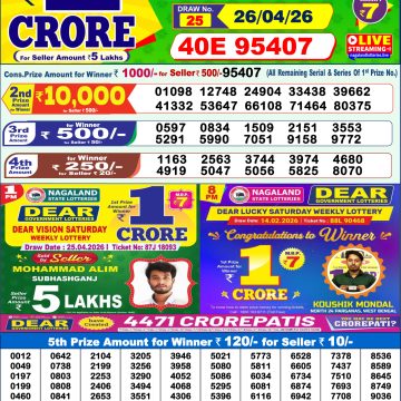 • Dear Lottery Result 26.04.26 6PM Today Dear Day Result
