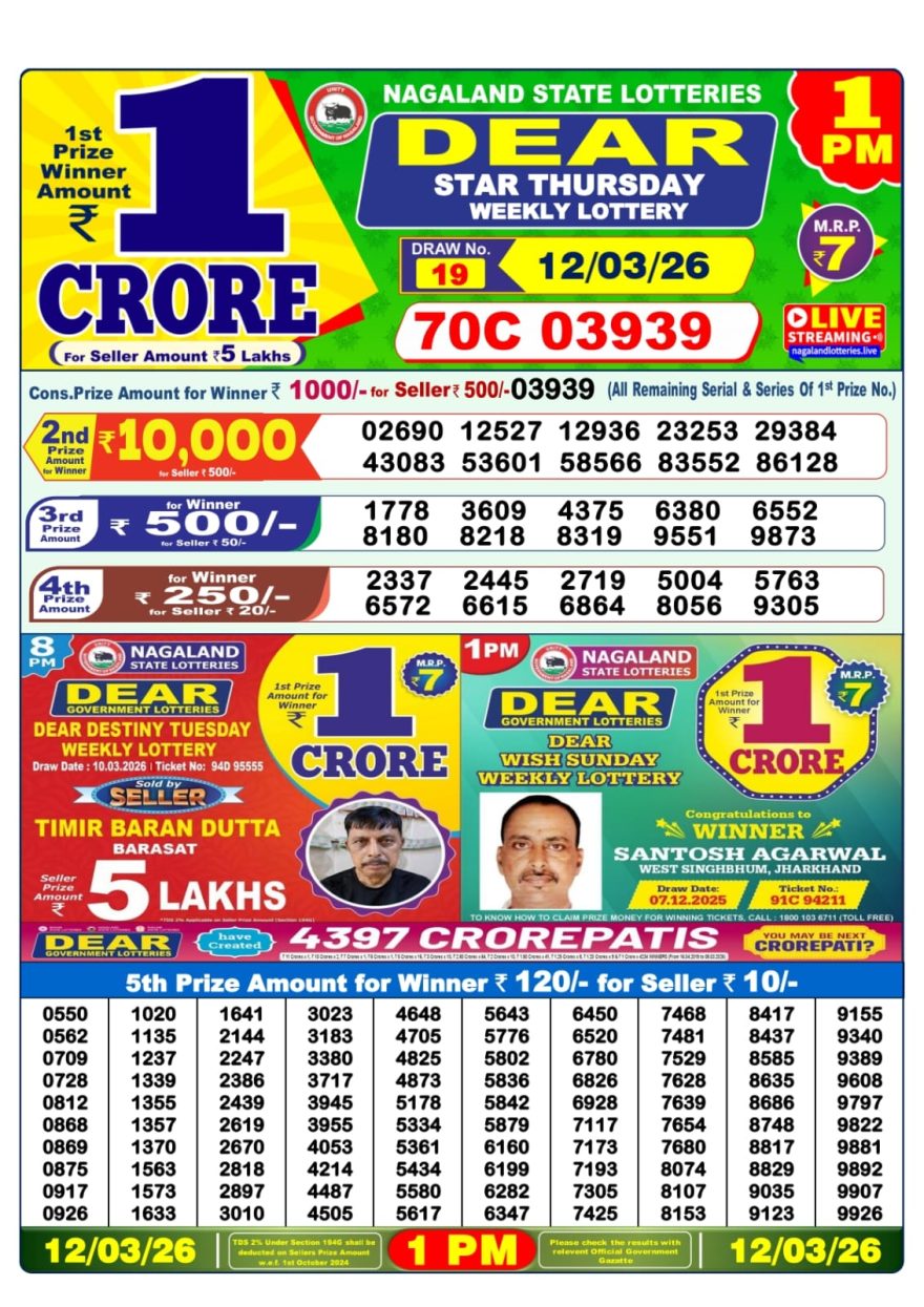 Dear Lottery Result 12.03.26 1PM Today Dear Morning Share: XFacebookPinterestRedditVKDiggLinkedinMix Related Results 0 8 Dear Lottery Result 29.04.26 1PM Today Dear Morning 0 9 Dear Lottery Result 28.04.26 1PM Today Dear Morning 0 14 Dear Lottery Result 27.04.26 1PM Today Dear Morning 0 18 Dear Lottery Result 26.04.26 1PM Today Dear Morning