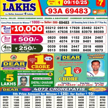 Dear Lottery Result 09.10.25 6PM Today Dear Day Result