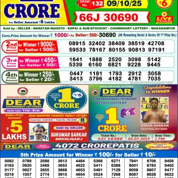 Dear Lottery Result 13.10.25 1PM Today Dear Morning Share: XFacebookPinterestRedditVKDiggLinkedinMix Related Results 0 14 Dear Lottery Result 12.10.25 1PM Today Dear Morning 0 15 Dear Lottery Result 11.10.25 1PM Today Dear Morning 0 26 Dear Lottery Result 10.10.25 1PM Today Dear Morning 0 31 Dear Lottery Result 09.10.25 1PM Today Dear Morning