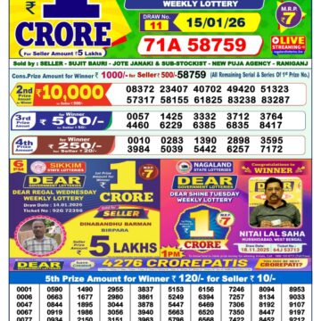 Dear Lottery Result 16.01.26 1PM Today Dear Morning Share: XFacebookPinterestRedditVKDiggLinkedinMix Related Results 0 13 Dear Lottery Result 15.01.26 1PM Today Dear Morning 0 20 Dear Lottery Result 14.01.26 1PM Today Dear Morning 0 29 Dear Lottery Result 13.01.26 1PM Today Dear Morning 0 29 Dear Lottery Result 12.01.26 1PM Today Dear Morning