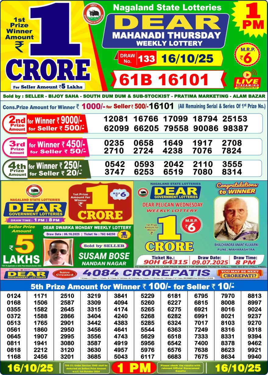 Dear Lottery Result 16.10.25 1PM Today Dear Morning Share: XFacebookPinterestRedditVKDiggLinkedinMix Related Results 0 2 Dear Lottery Result 05.12.25 1PM Today Dear Morning 0 7 Dear Lottery Result 04.12.25 1PM Today Dear Morning 0 12 Dear Lottery Result 03.12.25 1PM Today Dear Morning 0 16 Dear Lottery Result 02.12.25 1PM Today Dear Morning