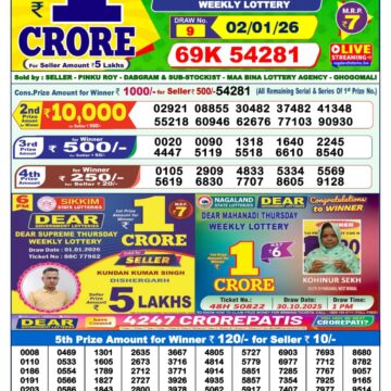 Dear Lottery Result 18.11.25 1PM Today Dear Morning Share: XFacebookPinterestRedditVKDiggLinkedinMix Related Results 0 4 Dear Lottery Result 02.01.26 1PM Today Dear Morning 0 13 Dear Lottery Result 01.01.26 1PM Today Dear Morning 0 18 Dear Lottery Result 31.12.25 1PM Today Dear Morning 0 26 Dear Lottery Result 30.12.25 1PM Today Dear Morning