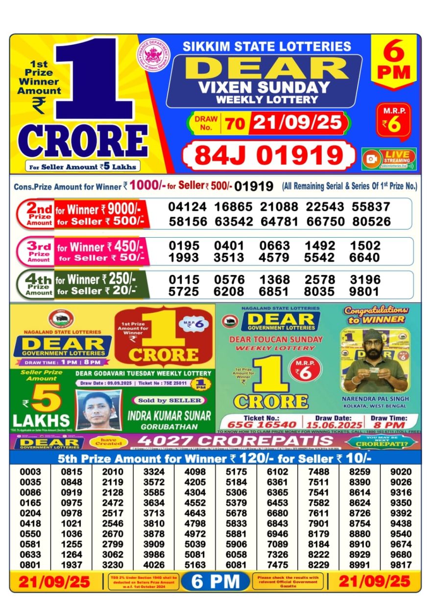 Dear Lottery Result 21.09.25 6PM Today Dear Day Result Share: XFacebookPinterestRedditVKDiggLinkedinMix Related Results 0 6 Dear Lottery Result 05.11.25 6PM Today Dear Day Result 0 11 Punjab State Dear 50 6 PM Lottery Result 04.11.25 0 10 Dear Lottery Result 04.11.25 6PM Today Dear Day Result 0 14 Dear Lottery Result 03.11.25 6PM Today Dear Day Result