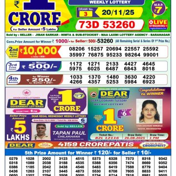 Dear Lottery 8pm Declared 20.11.25 Lottery Sambad Evening →