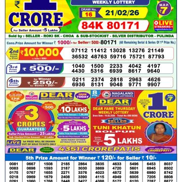 Dear Lottery Result 22.02.26 1PM Today Dear Morning Share: XFacebookPinterestRedditVKDiggLinkedinMix Related Results 0 9 Dear Lottery Result 21.02.26 1PM Today Dear Morning 0 29 Dear Lottery Result 20.02.26 1PM Today Dear Morning 0 27 Dear Lottery Result 19.02.26 1PM Today Dear Morning 0 43 Dear Lottery Result 18.02.26 1PM Today Dear Morning
