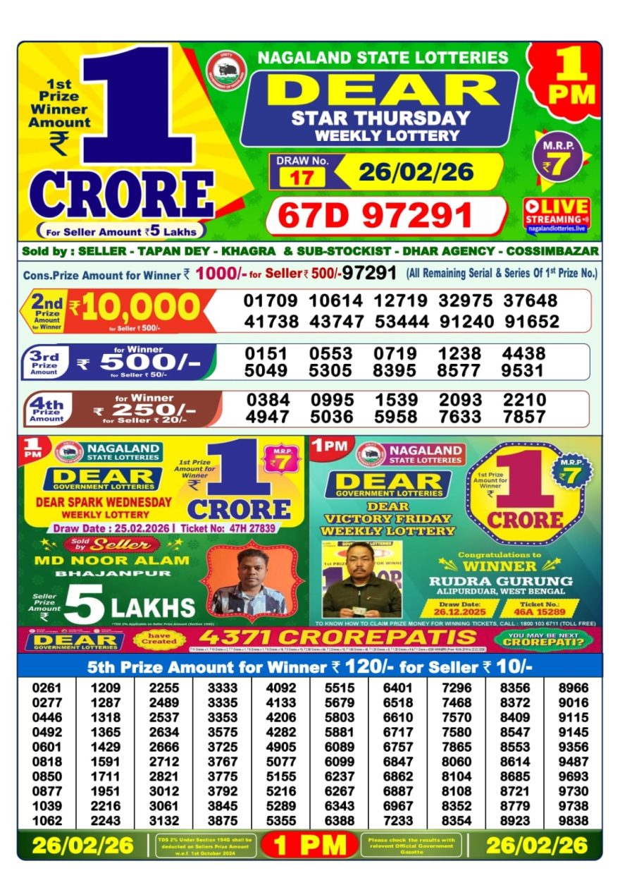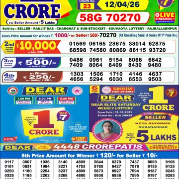 Dear Lottery Result 26.02.26 1PM Today Dear Morning Share: XFacebookPinterestRedditVKDiggLinkedinMix Related Results 0 6 Dear Lottery Result 12.04.26 1PM Today Dear Morning 0 17 Dear Lottery Result 11.04.26 1PM Today Dear Morning 0 23 Dear Lottery Result 10.04.26 1PM Today Dear Morning 0 35 Dear Lottery Result 09.04.26 1PM Today Dear Morning