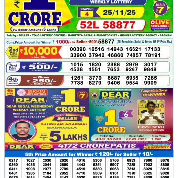 Dear Lottery Result 26.11.25 1PM Today Dear Morning Share: XFacebookPinterestRedditVKDiggLinkedinMix Related Results 0 7 Dear Lottery Result 25.11.25 1PM Today Dear Morning 0 11 Dear Lottery Result 24.11.25 1PM Today Dear Morning 0 22 Dear Lottery Result 23.11.25 1PM Today Dear Morning 0 25 Dear Lottery Result 22.11.25 1PM Today Dear Morning
