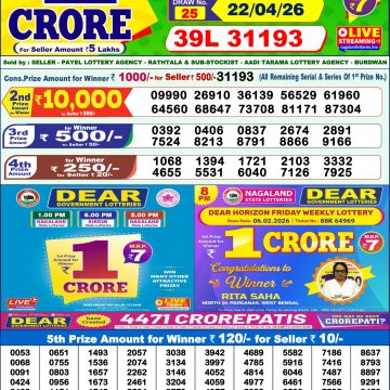 Dear Lottery Result 28.08.25 1PM Today Dear Morning Share: XFacebookPinterestRedditVKDiggLinkedinMix Related Results 0 2 Dear Lottery Result 22.04.26 1PM Today Dear Morning 0 10 Dear Lottery Result 21.04.26 1PM Today Dear Morning 0 16 Dear Lottery Result 20.04.26 1PM Today Dear Morning 0 33 Dear Lottery Result 19.04.26 1PM Today Dear Morning