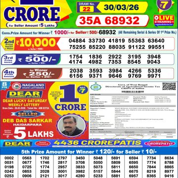Dear Lottery Result 31.03.26 1PM Today Dear Morning Share: XFacebookPinterestRedditVKDiggLinkedinMix Related Results 0 10 Dear Lottery Result 30.03.26 1PM Today Dear Morning 0 16 Dear Lottery Result 29.03.26 1PM Today Dear Morning 0 24 Dear Lottery Result 28.03.26 1PM Today Dear Morning 0 30 Dear Lottery Result 27.03.26 1PM Today Dear Morning