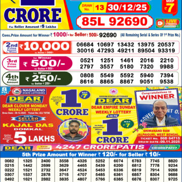 Dear Lottery Result 31.12.25 6PM Today Dear Day Result Share: XFacebookPinterestRedditVKDiggLinkedinMix Related Results 0 11 Dear Lottery Result 30.12.25 6PM Today Dear Day Result 0 18 Dear Lottery Result 29.12.25 6PM Today Dear Day Result 0 23 Dear Lottery Result 28.12.25 6PM Today Dear Day Result 0 33 Dear X-Mas Bumper 27.12.25 6PM Today Dear Day Result