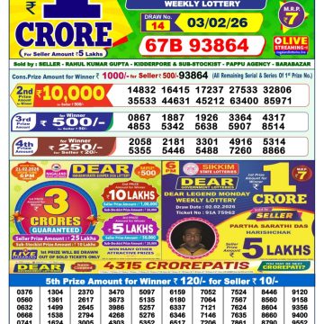 • Dear Lottery Result 03.02.26 6PM Today Dear Day Result
