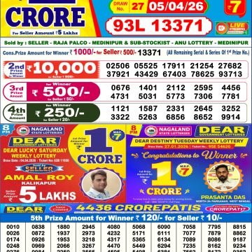 Dear lottery result today 6 pm 10.04 2025 Share: XFacebookPinterestRedditVKDiggLinkedinMix Related Results 0 7 Dear Lottery Result 05.04.26 6PM Today Dear Day Result 0 10 Punjab State Dear 200 6 PM Lottery Result 04.04.26 0 17 Dear Lottery Result 04.04.26 6PM Today Dear Day Result 0 19 Dear Lottery Result 03.04.26 6PM Today Dear Day Result